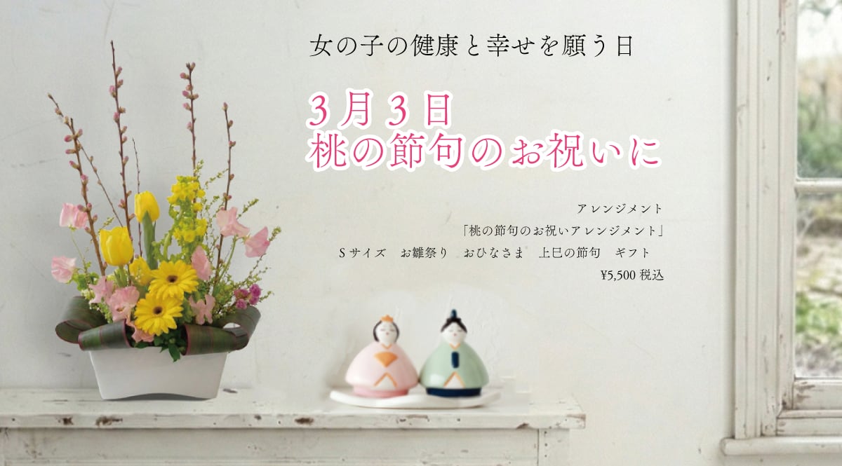 アレンジメント「桃の節句のお祝いアレンジメント」Sサイズ お雛祭り おひなさま 上巳の節句 ギフト