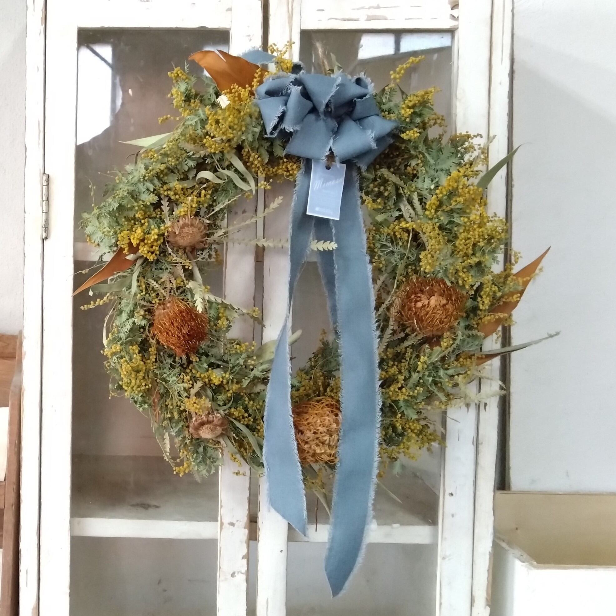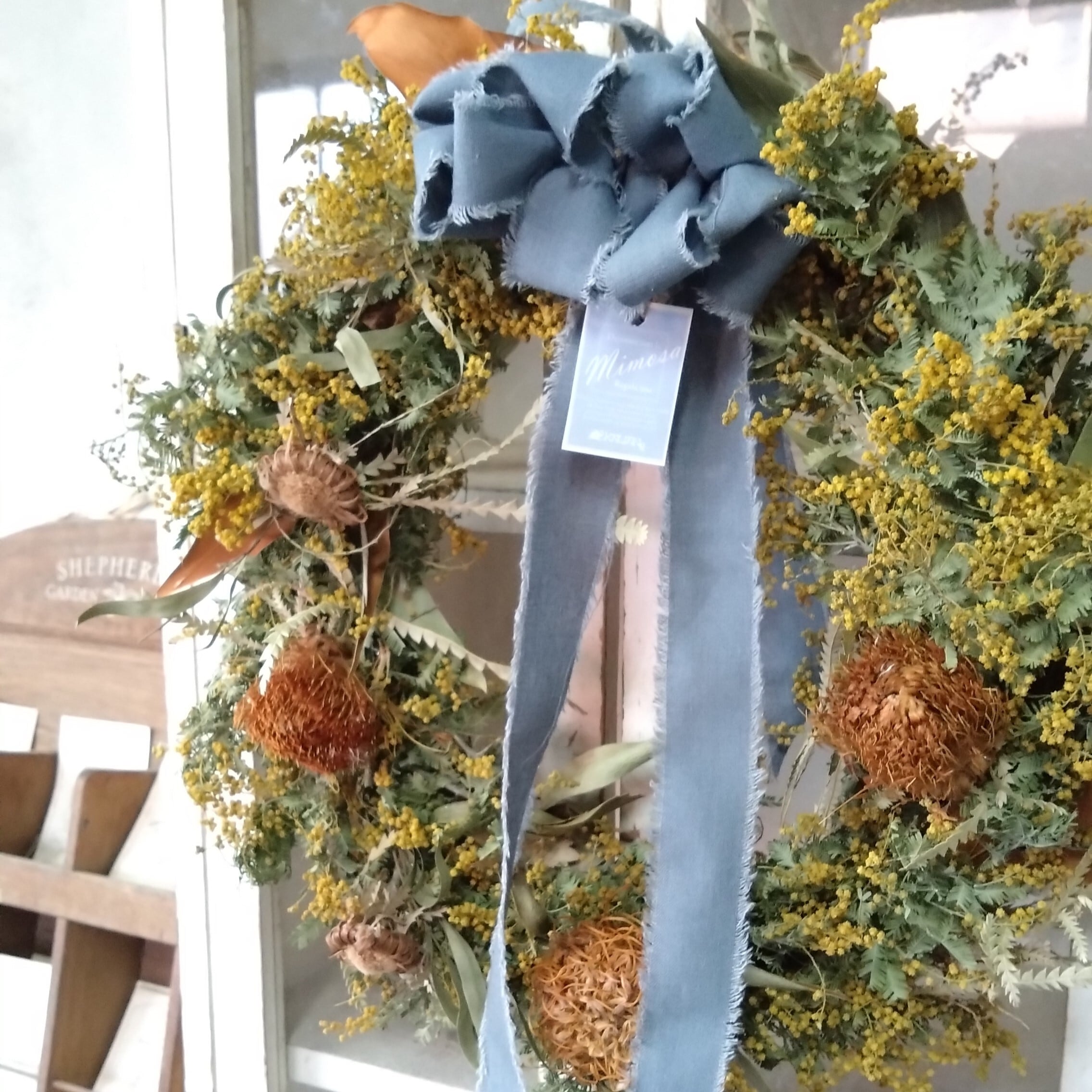 当ショップは「上質に、少しの遊び心を。」をコンセプトに、皆様に美しい自然素材と特別な瞬間をお届けいたします。この機会にぜひ、この「ミモザのドライフラワーリース」で心温まるひとときを彩りましょう!