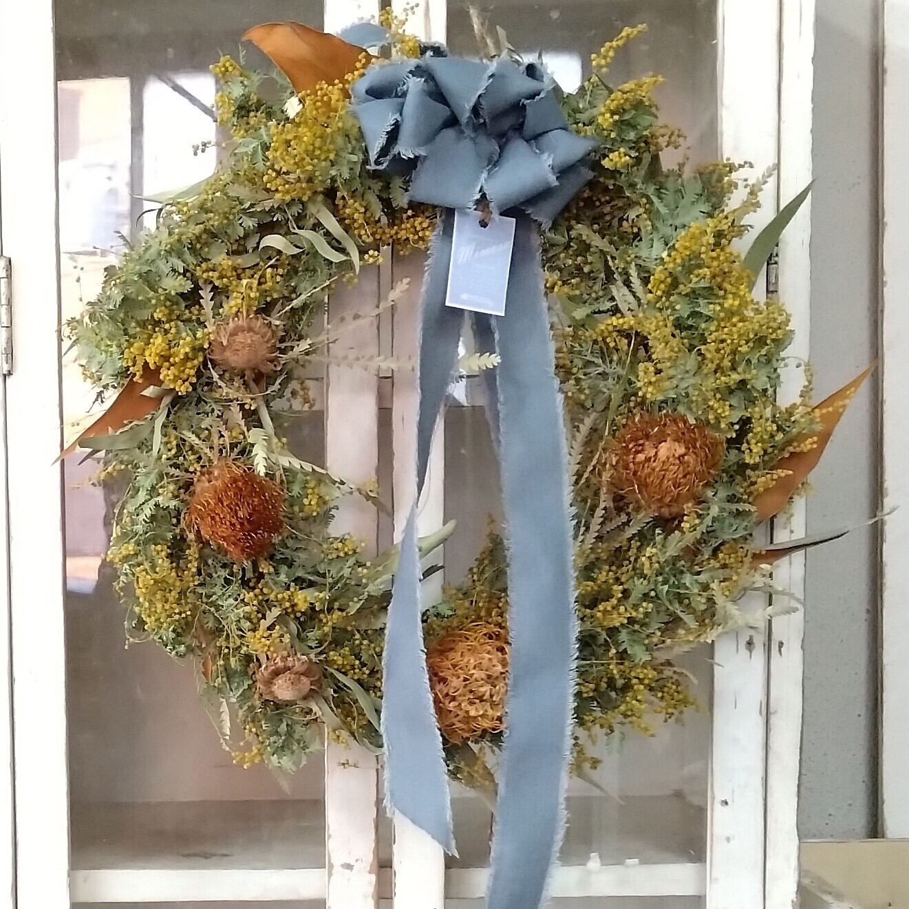 急なご依頼にも迅速に対応いたしますので、イベントやお祝い事の飾り付けにもぜひご検討ください。この「ミモザのドライフラワーリース」は、皆様の特別な瞬間を演出するための素晴らしいアイテムです。