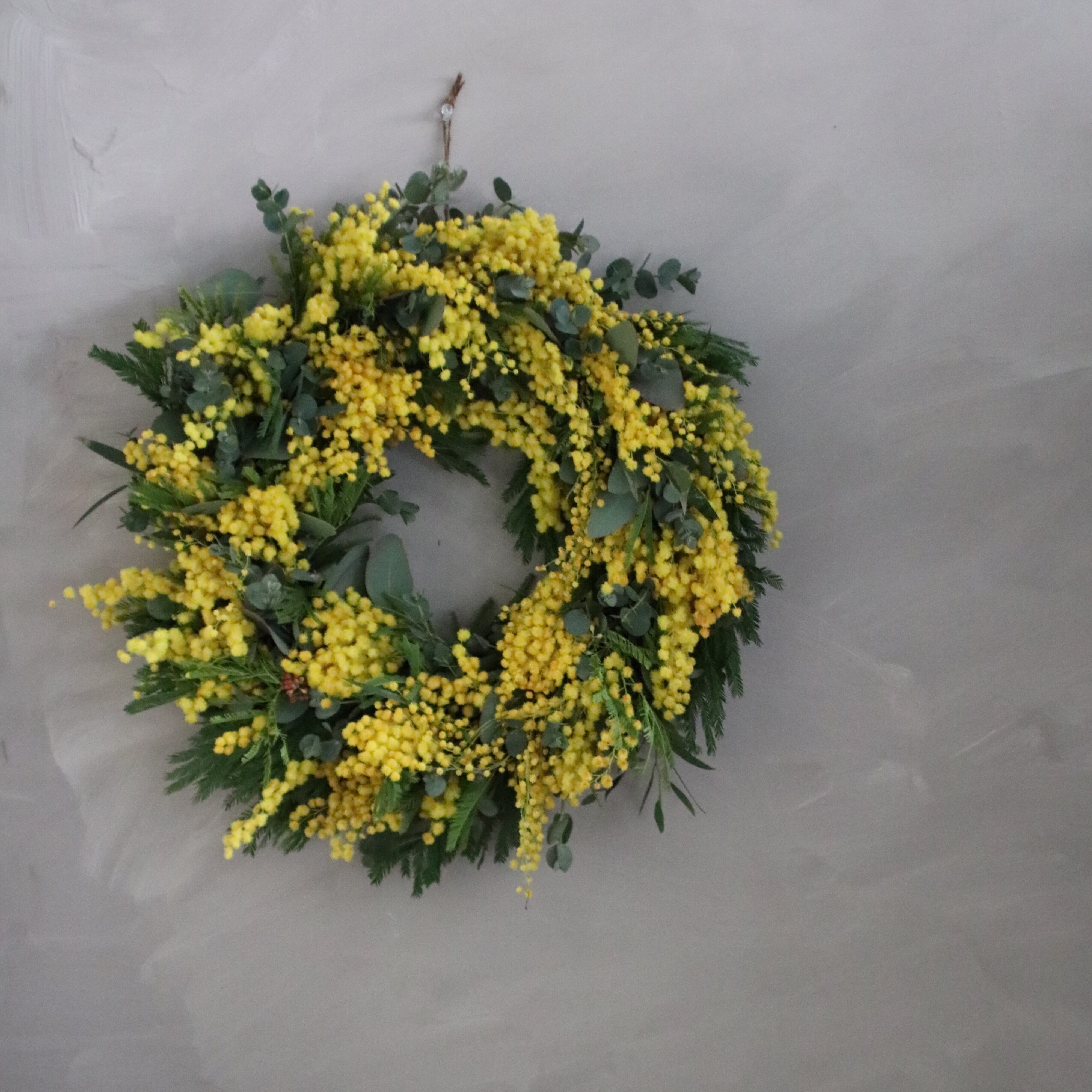 この「ミモザとユーカリのフレッシュリース」で、心温まる特別な瞬間をお迎えください!素敵な思い出作りにぜひご利用ください。