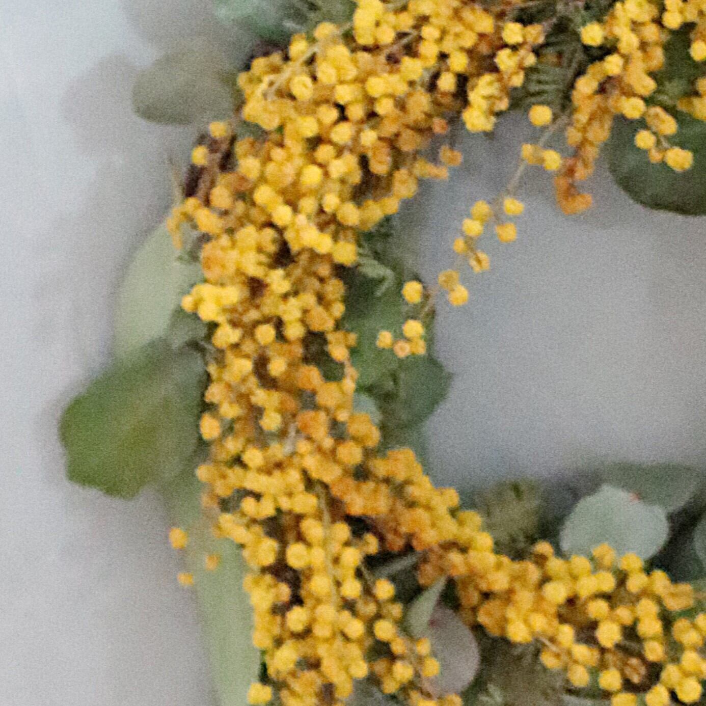 このリースは制作時にはドライフラワーのミモザを使用しますが、配送中にドライフラワーの性質上、一部破損となる場合があります。