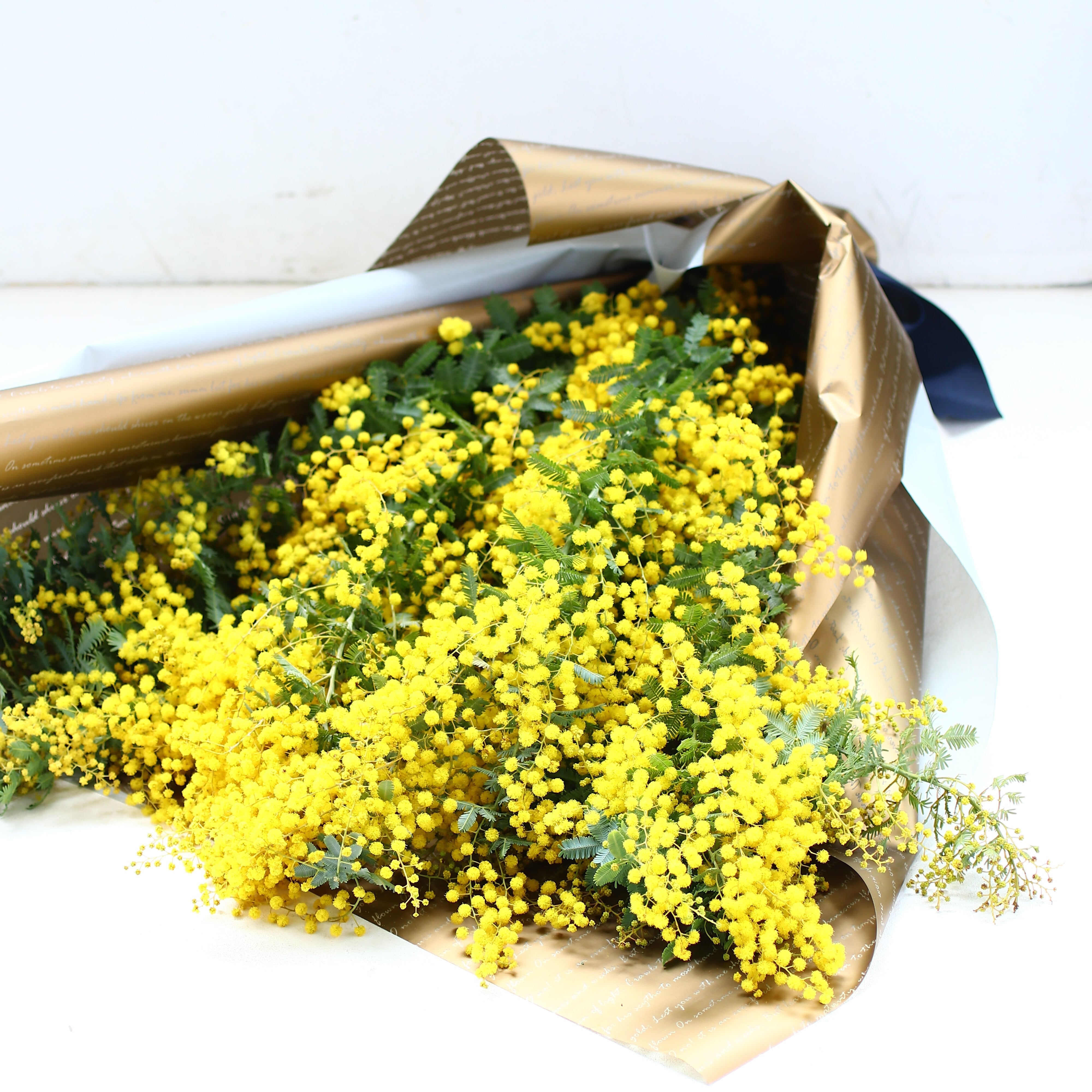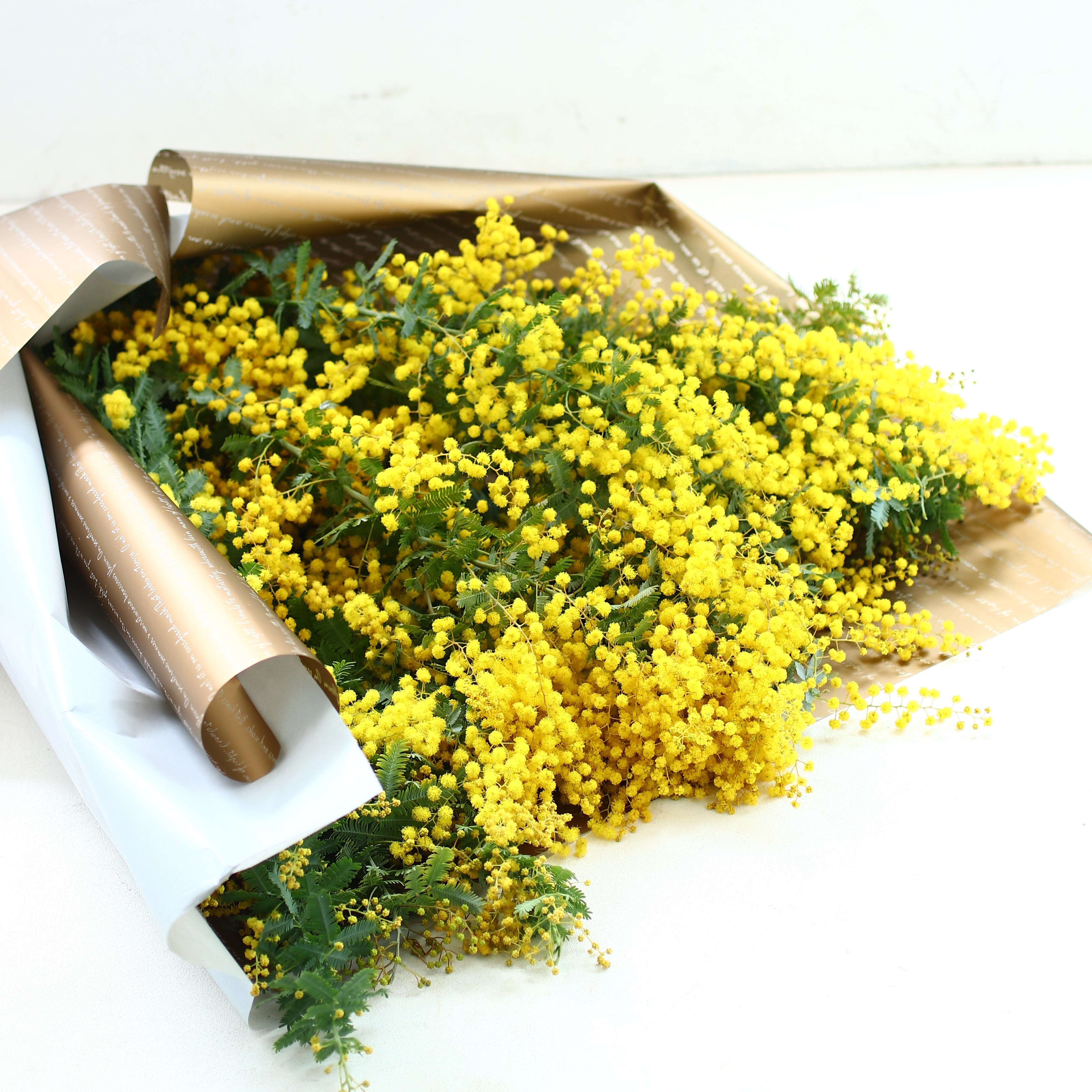 国内の厳選された産地から仕入れたフレッシュなミモザで、特に春にぴったりなアイテムです。この「ミモザのフレッシュブーケ」は、皆様の特別な瞬間を華やかに彩るための素敵なアイテムです。ミモザの明るい色合いと香りが、受け取る方の心を温めてくれるはずです。