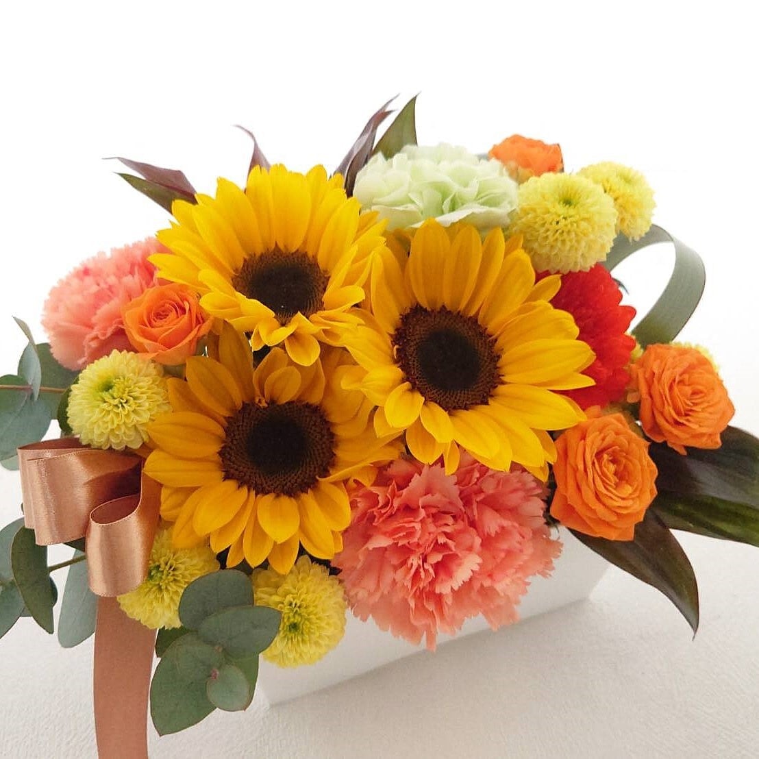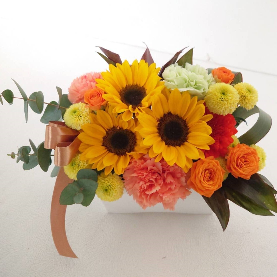 ・新鮮なヒマワリとカーネーションを使用
