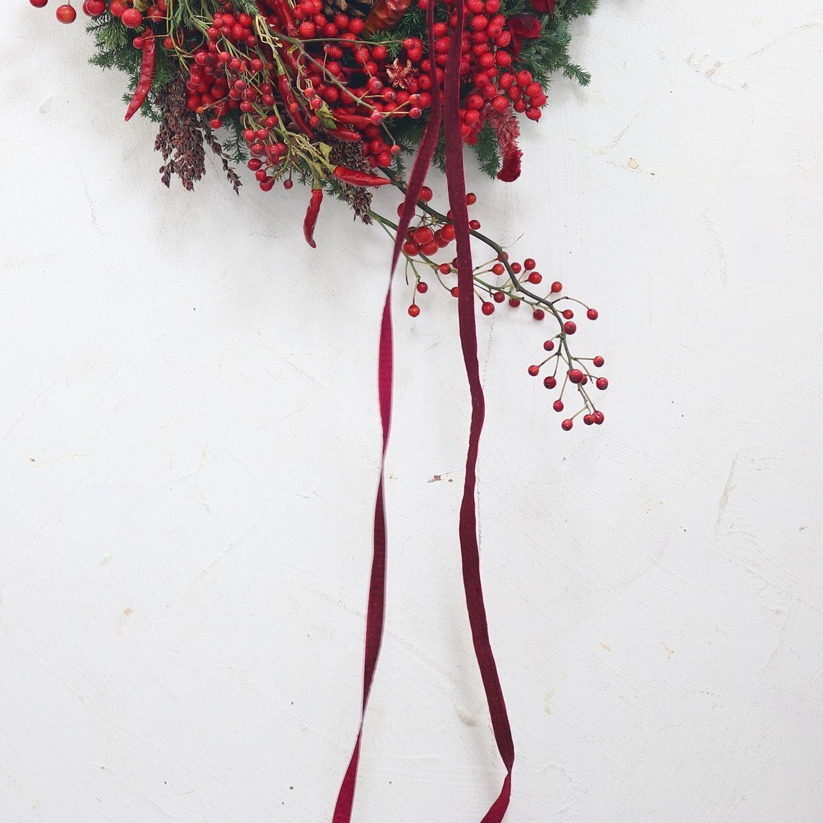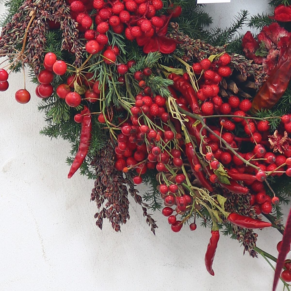 心を込めたクリスマスリース「RED HOTなクリスマスリース」をご用意いたしました。鮮やかな赤を基調としたデザインが、クリスマスの特別な雰囲気を一層引き立てます。ドア飾りやクリスマスギフトとして、華やかさと温かさを届けるアイテムです。