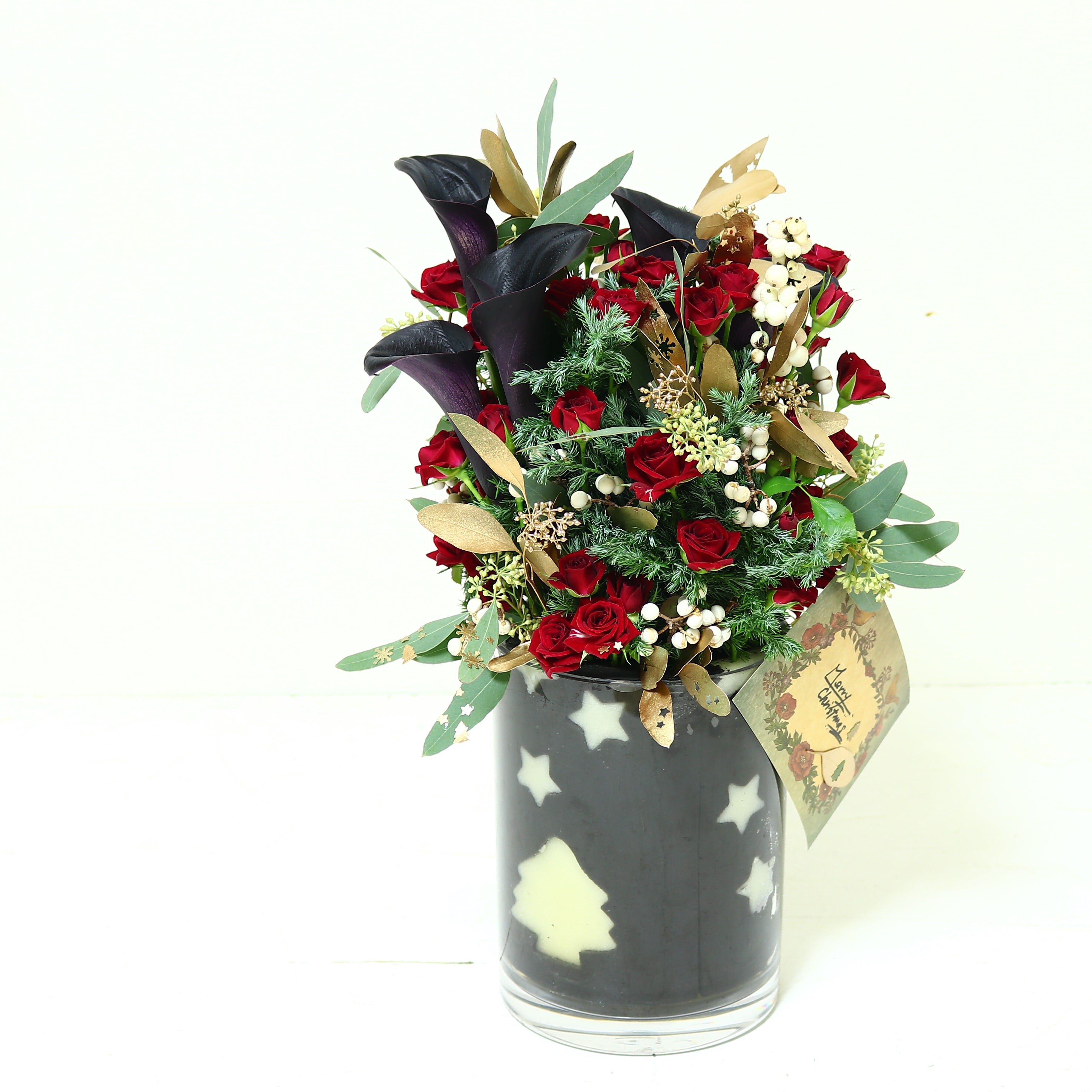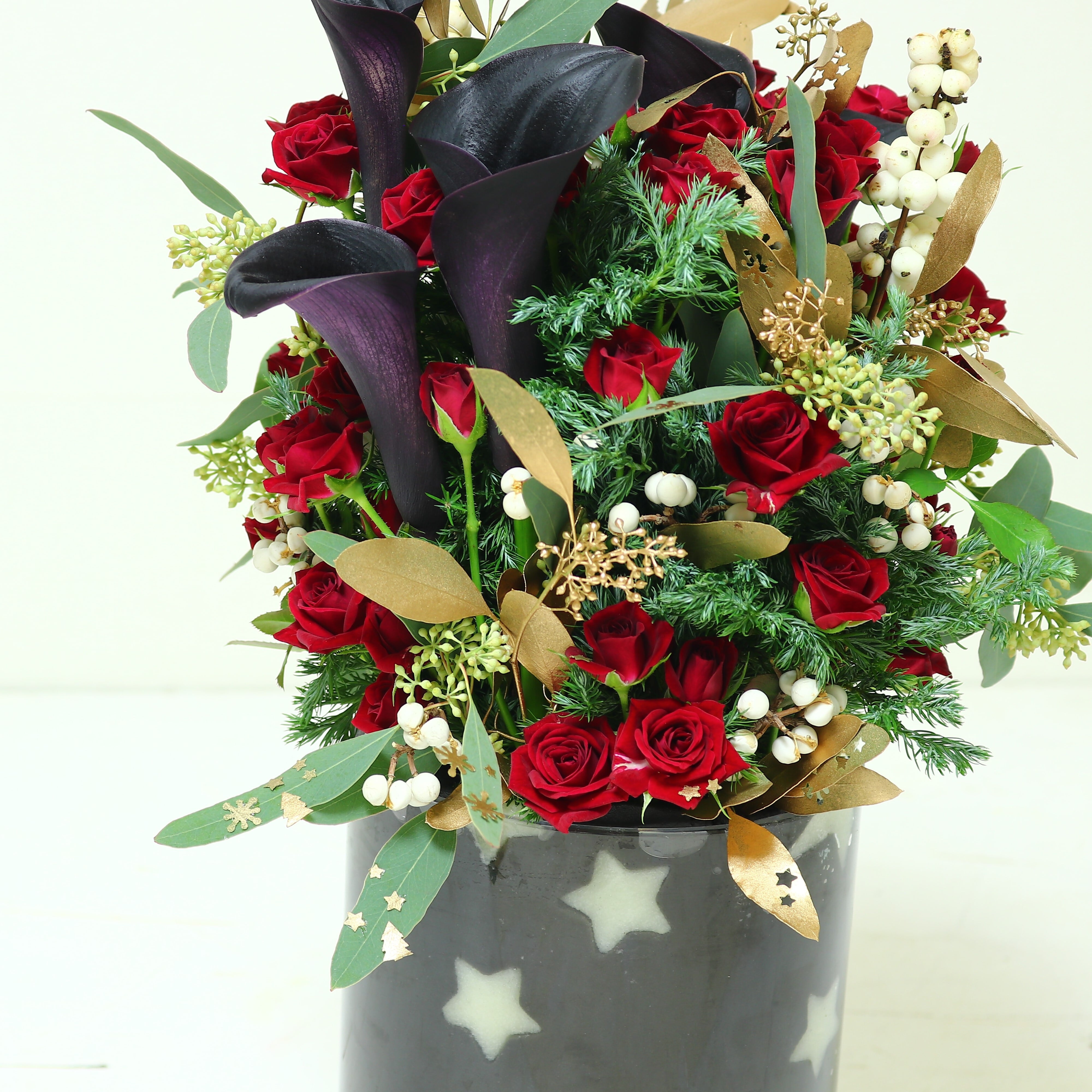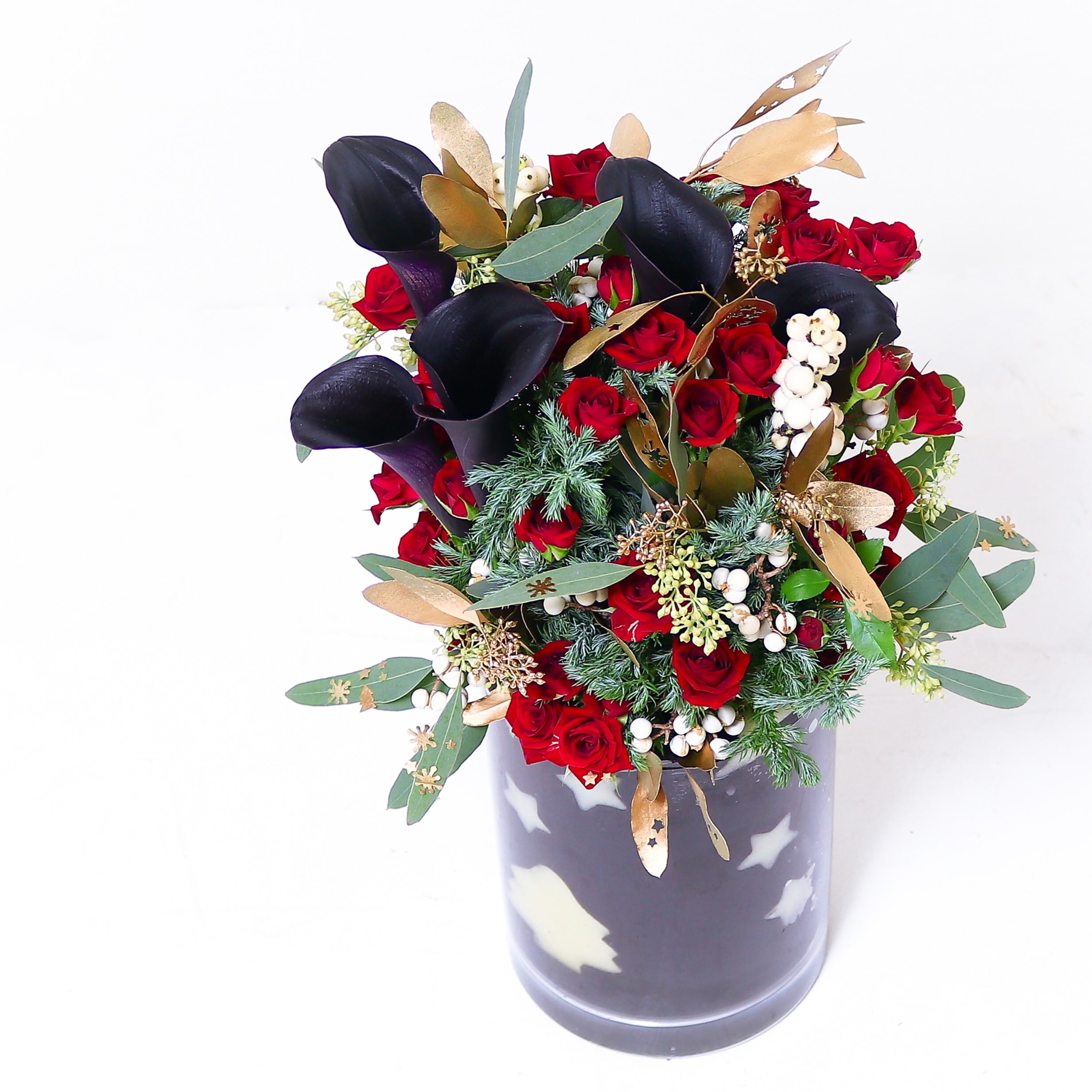 心を込めて製作したクリスマスアレンジメント「KALIANgのブラッククリスマス」をご用意しました。洗練されたブラックシリンダーに、スタイリッシュな黒を基調としたアレンジメントが印象的な一品です。このアレンジメントは、クリスマスの特別な雰囲気を一層引き立て、シンプルながらも高級感のあるインテリアとして、ご家庭やオフィスに華やかさと落ち着きをもたらします。