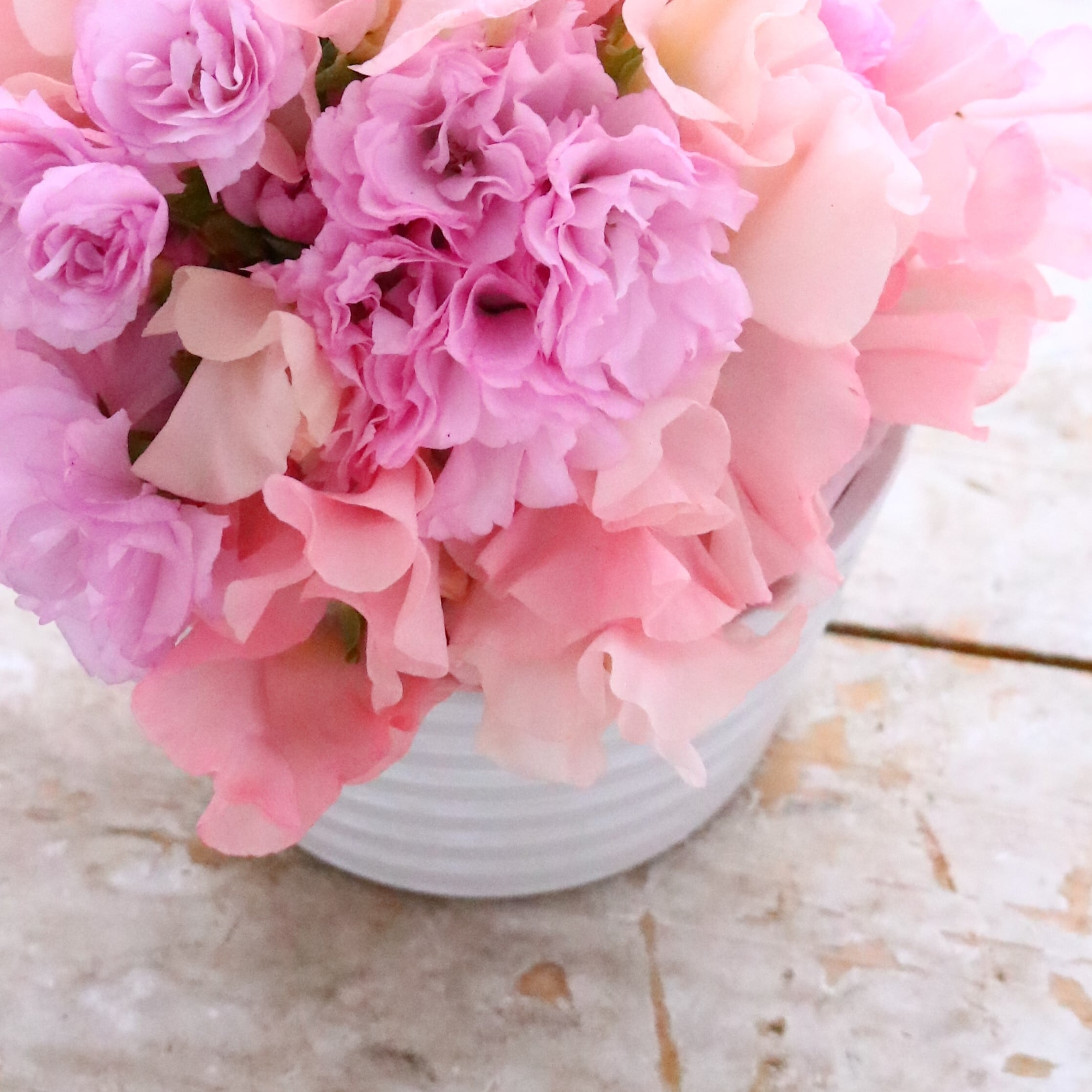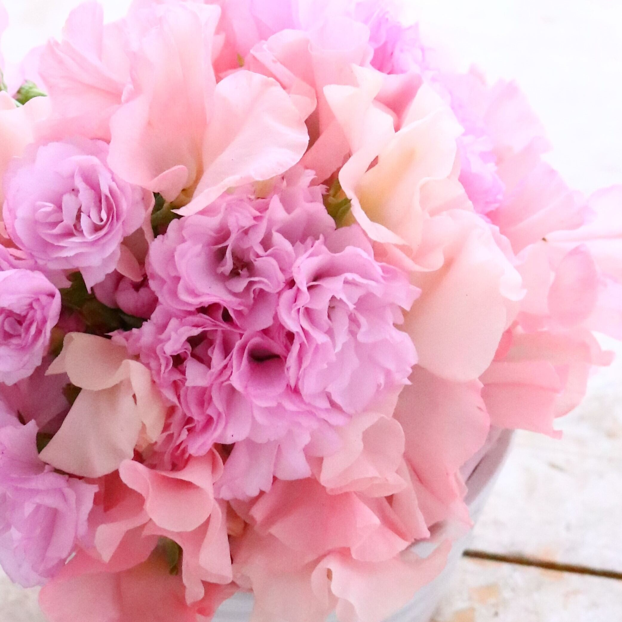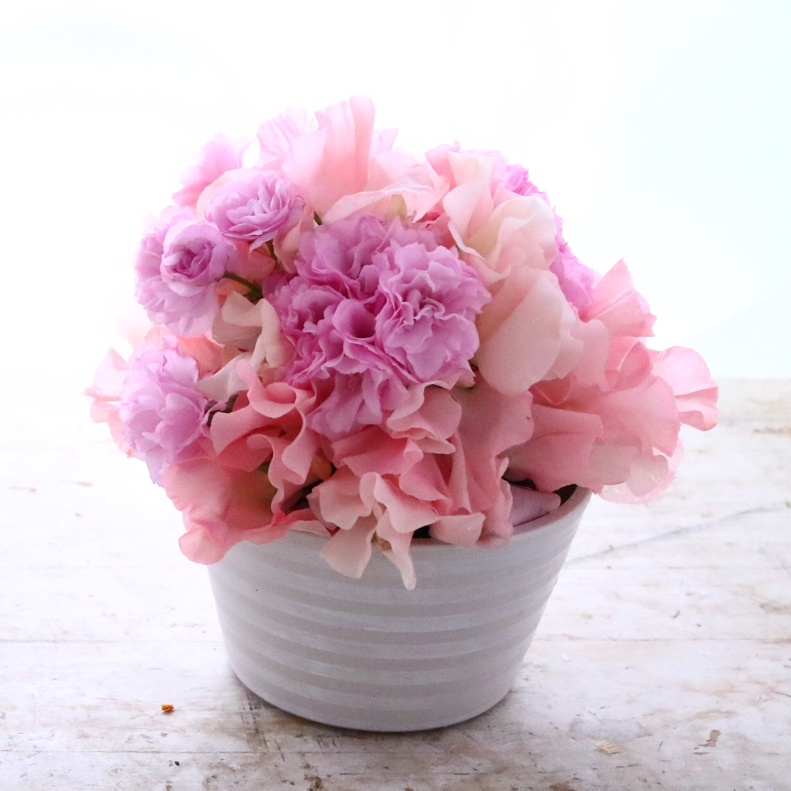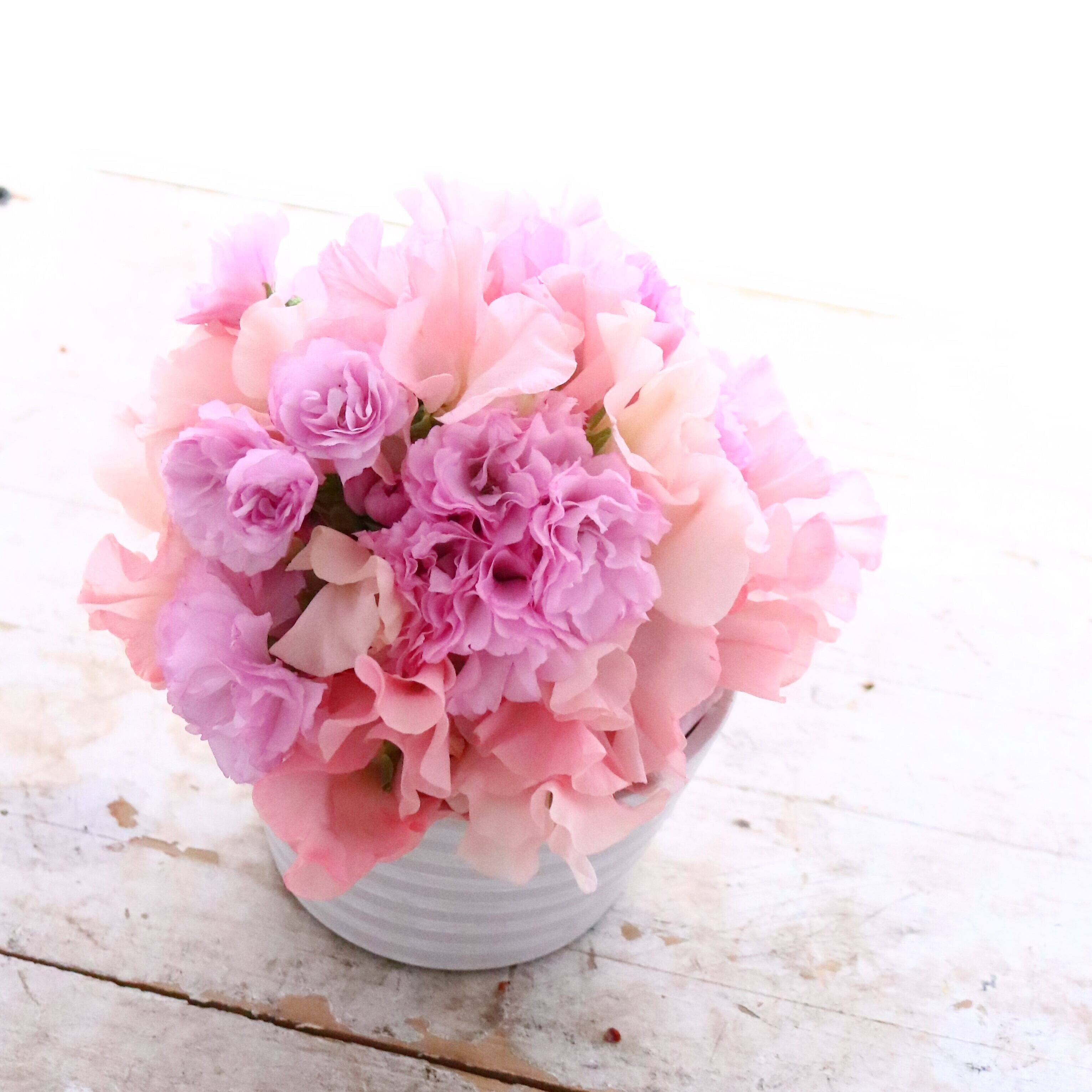 こちらのアレンジメントには、ふんだんに使用された柔らかな桜と優しい色合いのスイートピーが特徴です。丸みを帯びたデザインは、特別な日のサプライズや、日常の中で大切な方への祝福にぴったりです!春の息吹を感じさせるこのアレンジメントは、贈る相手の心に鮮やかな印象を残します。