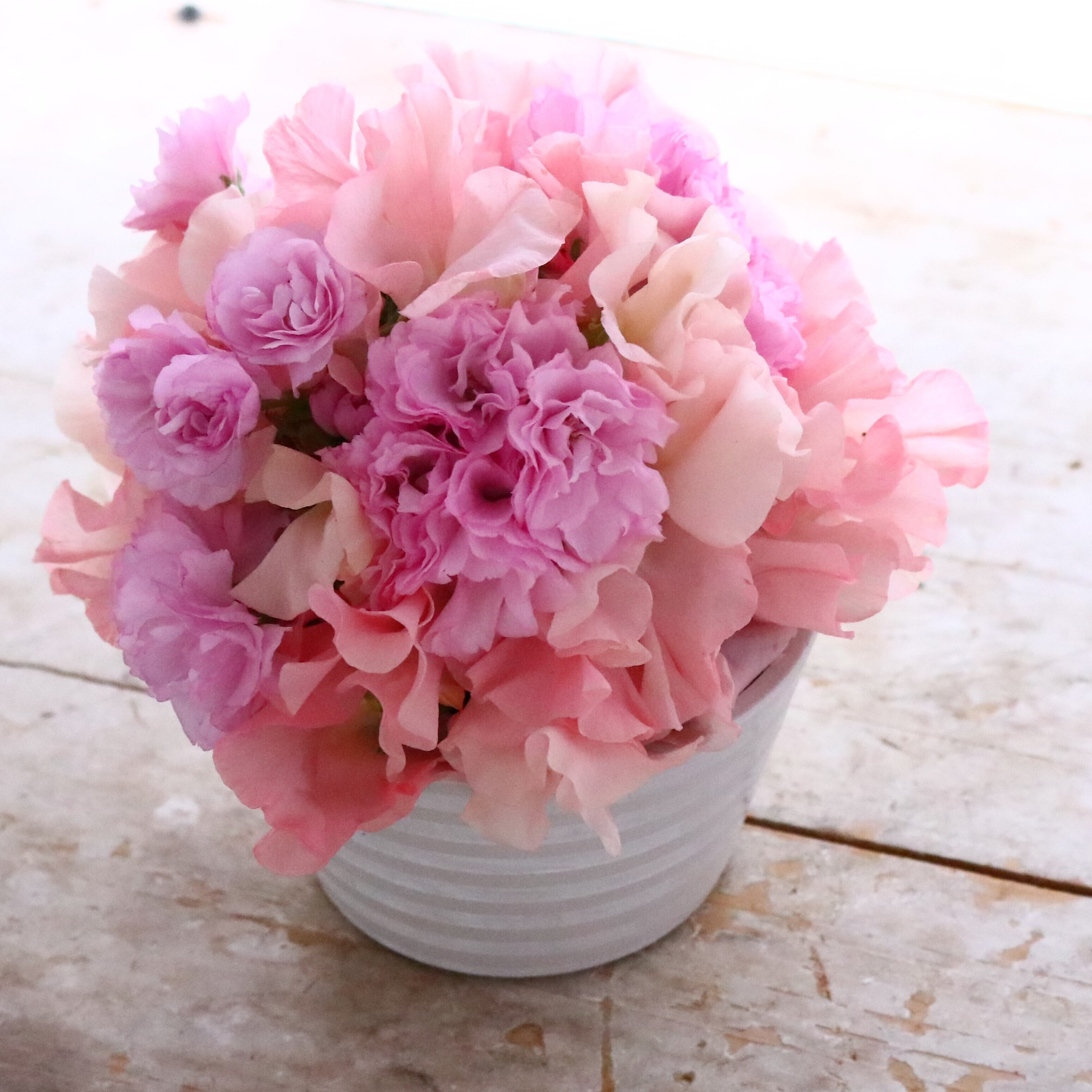 春のギフト「さくらまる」アレンジメントをご用意いたしました。この愛らしい桜のアレンジメントは、特別な日や記念日の贈り物に最適です!「さくら」とスイートピーが織りなす華やかなラウンドスタイルは、贈られた瞬間に心を温め、春の訪れを感じさせる特別な存在になります。