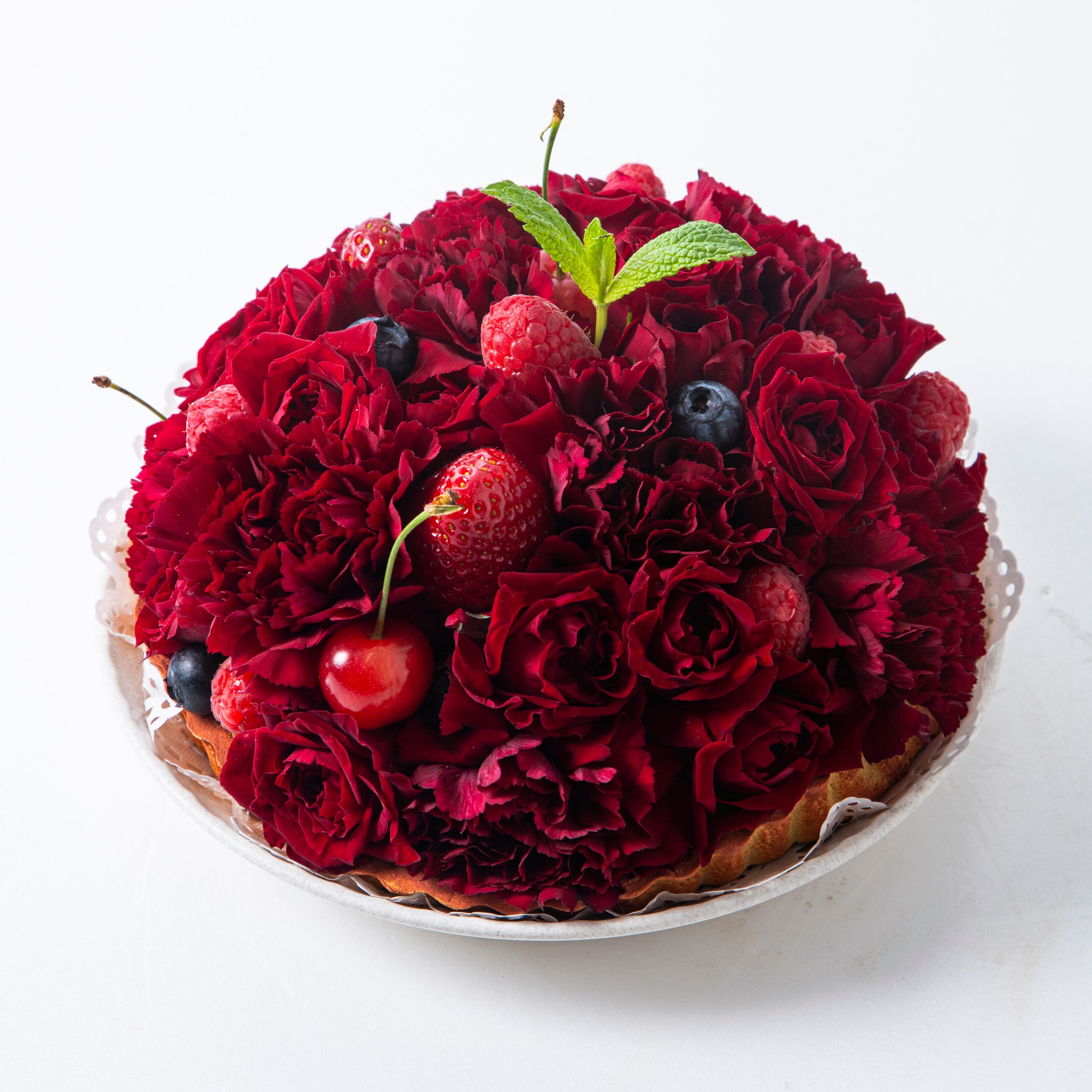 贈られたその瞬間から、母の日をさらに特別なものにしていただけることでしょう。選び抜かれたバラを使用し、一点一点心を込めてお作りいたします。この美しい「タルト オ フリュイ」は、愛情を込めた贈り物として最適なアイテムです。
