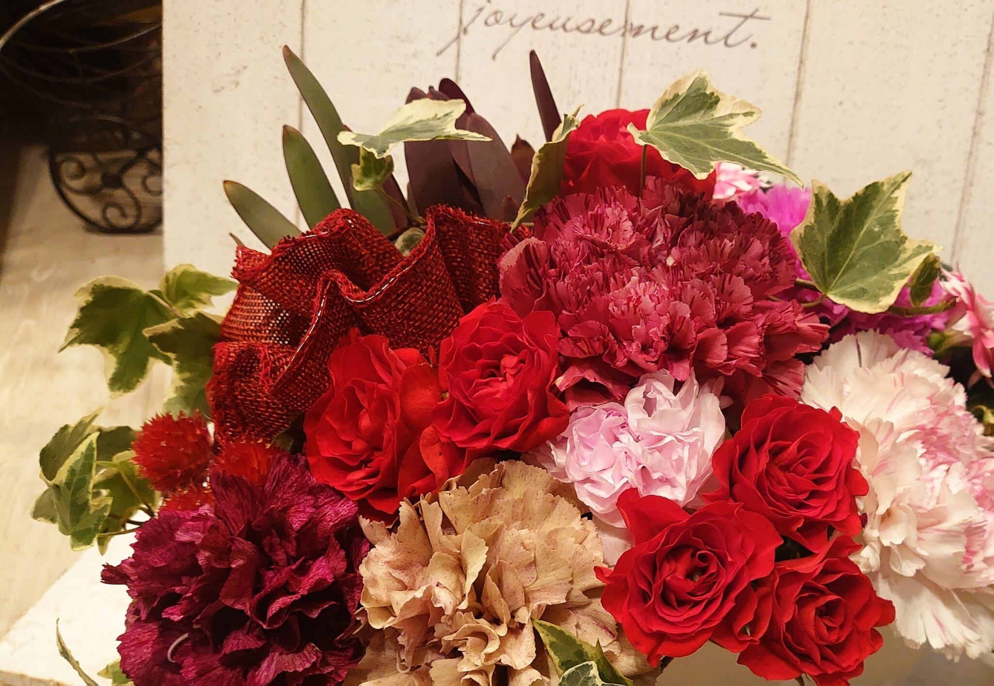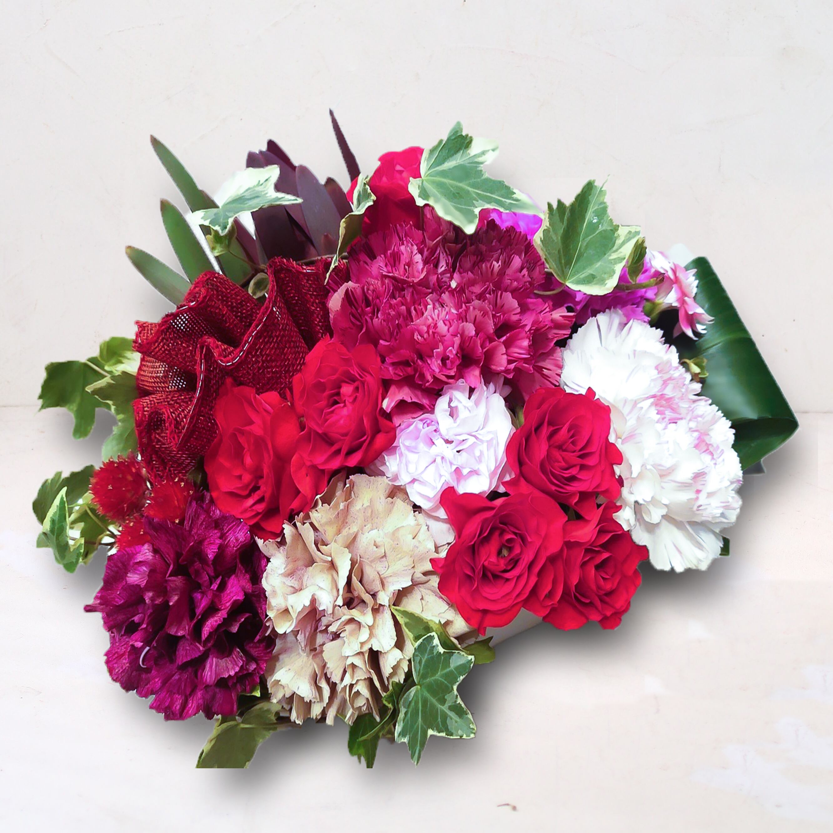 ・厳選されたフレッシュなカーネーションとバラを使用