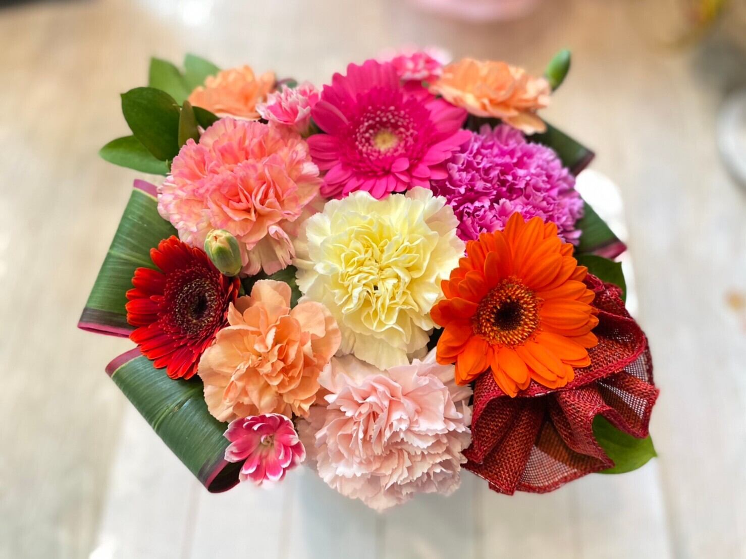 *花材:カーネーション・ガーベラ・季節のお花とグリーン