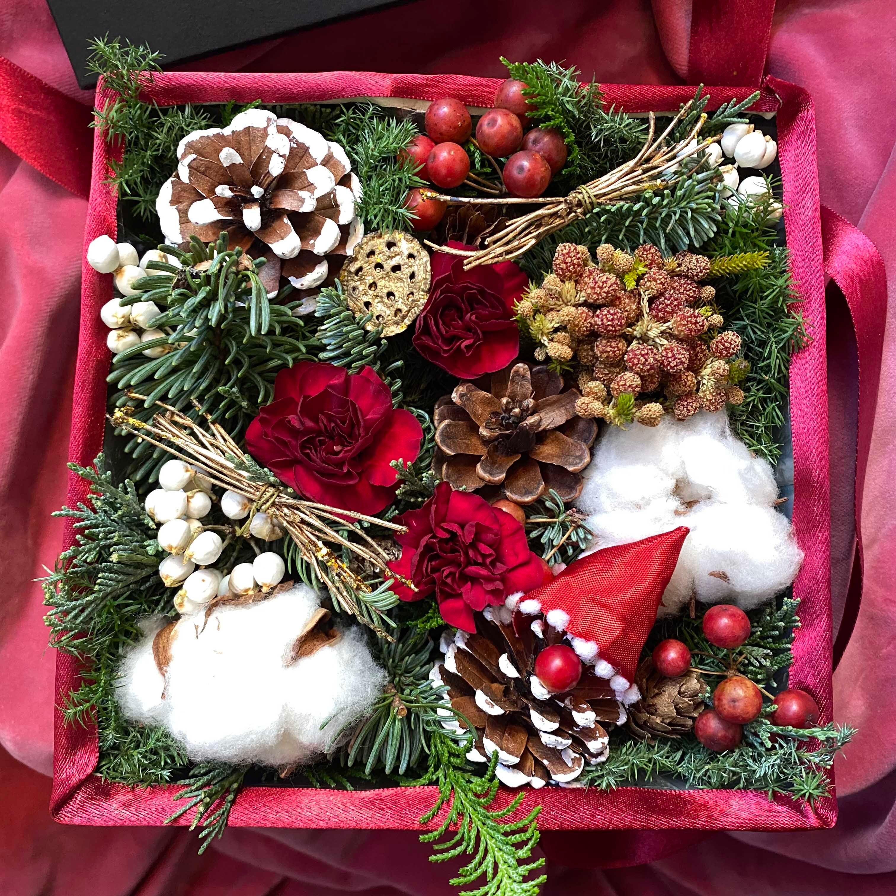 この「クリスマスの妖精トゥントゥのBoxアレンジメント」を通じて、大切な方に特別なクリスマスの喜びをお届けしてみませんか。心温まる瞬間を花々で演出し、素敵な時間をお過ごしください!