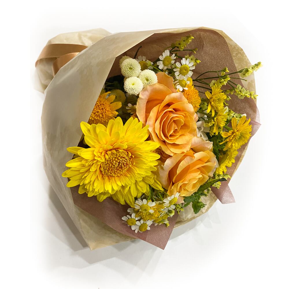 イエロー・オレンジ系のお花をメインに旬のお花でお作りします。