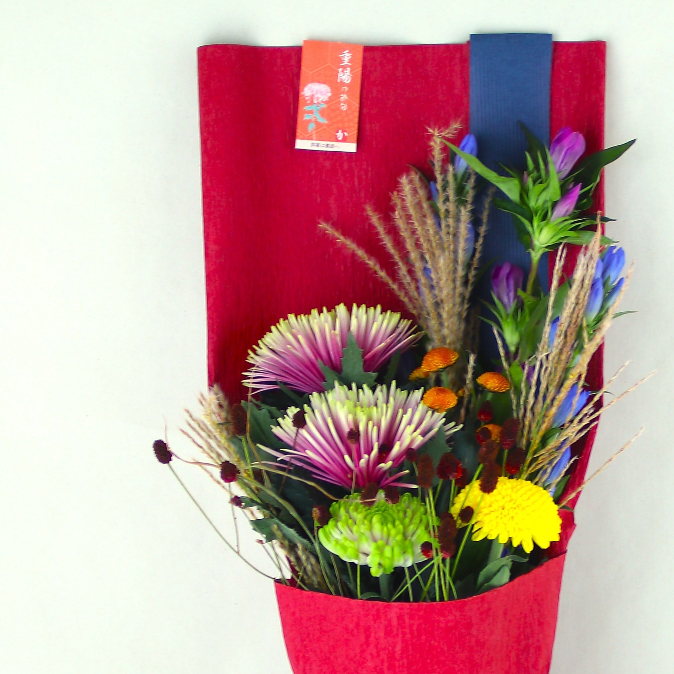 この花束は、華やかな重陽の節句の雰囲気を演出するだけでなく、お祝いやギフトにも最適です。特別な日の贈り物として、心を込めてお届けいたします。