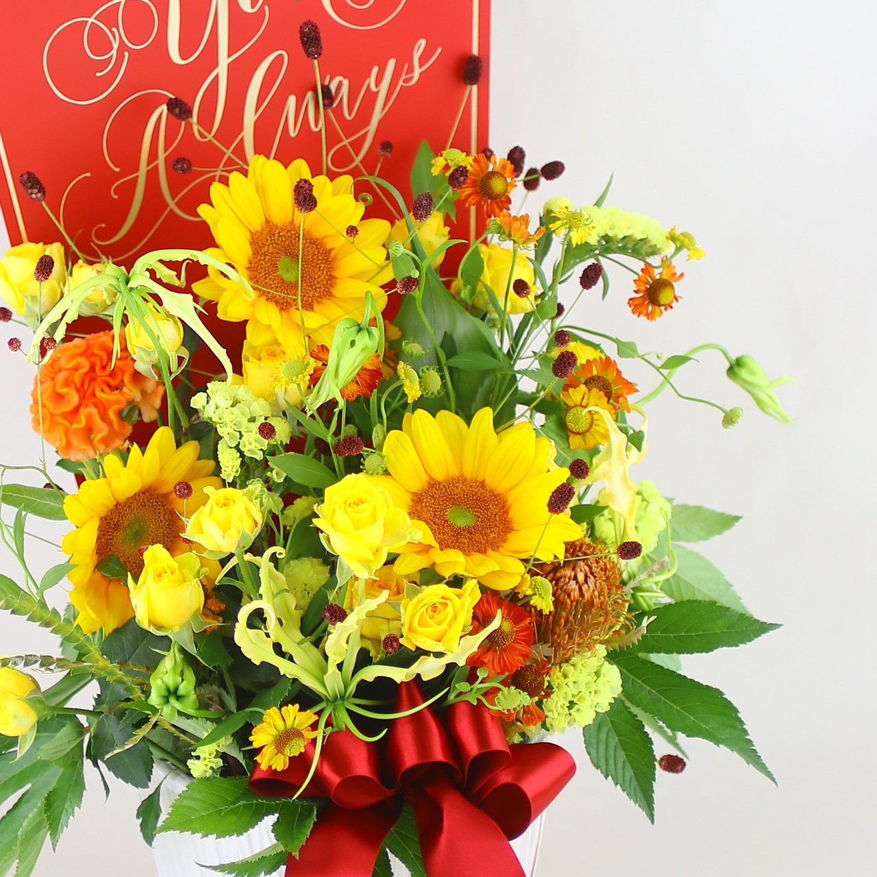 このアレンジメントは、感謝の気持ちを伝えるだけでなく、笑顔や幸せをお届けすることができます。大切な方への贈り物に、ぜひご検討ください。