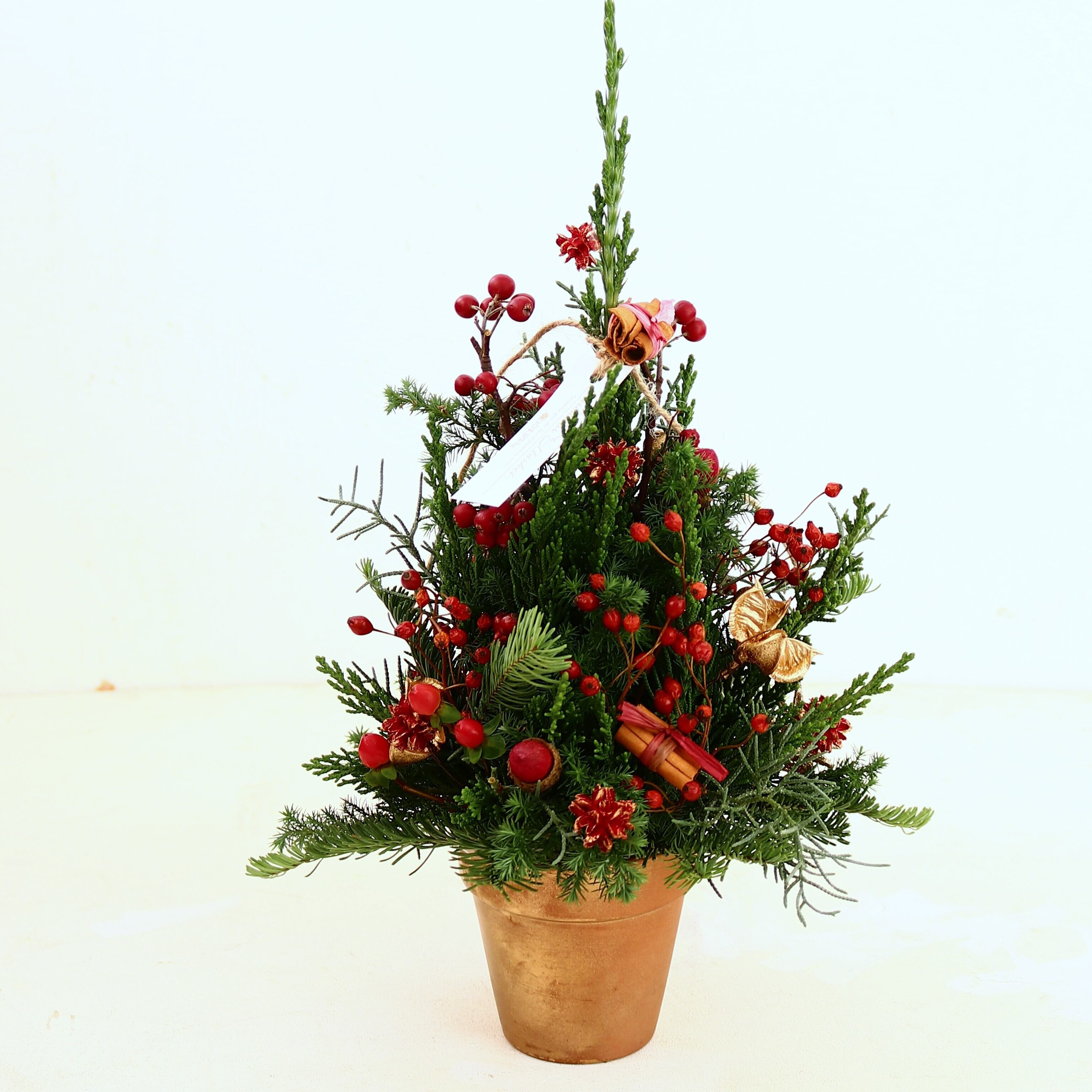 クリスマスアレンジメント「赤いクリスマスツリーアレンジメント」Sサイズ クリスマスギフト トラッドスタイル