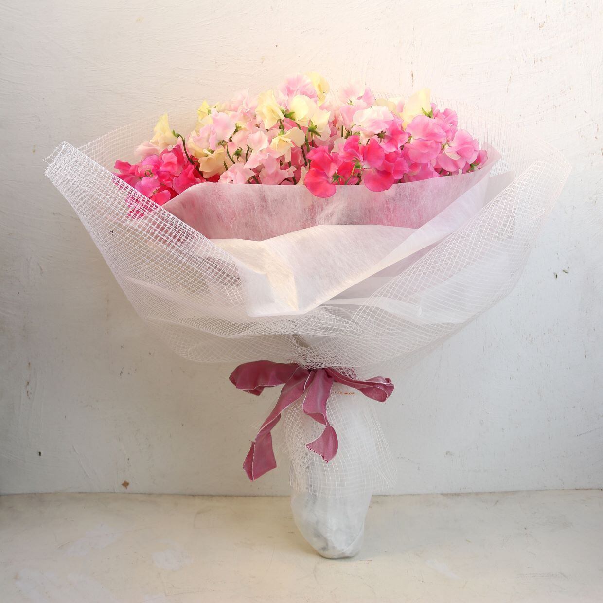 この「香りのよいスイートピーの花束 ピンク系」で、特別な瞬間を演出してください!心に残る贈り物として最適な花束です!