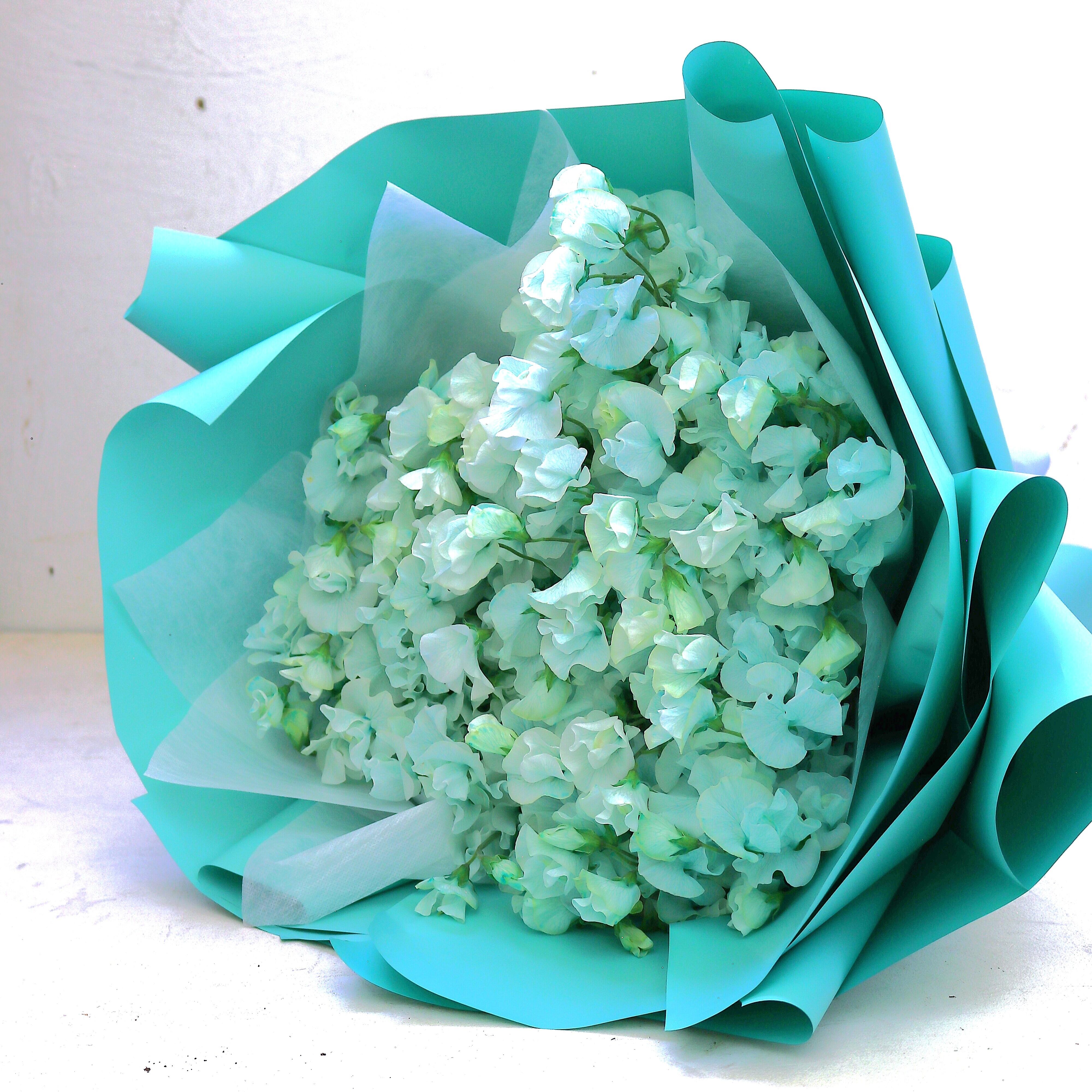 この「香りのよいスイートピーの花束 そらいろ系100本」で、心に残る特別な瞬間を演出してください!贈り物にも最適な素敵な花束です!