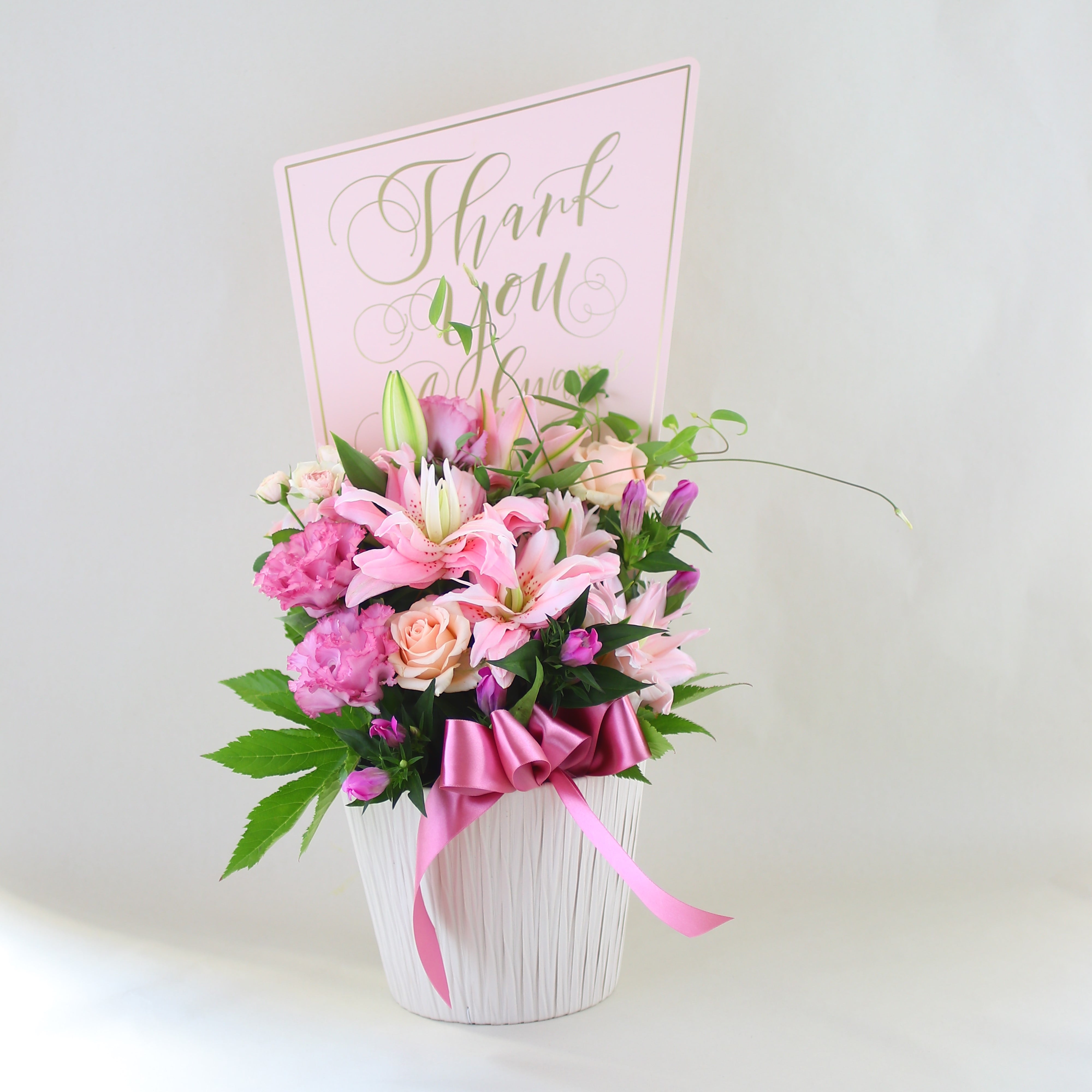 目が悪くなったかたでも楽しめるユリの香りに包まれるアレンジメントをぜひ贈っていただけると私たちも幸甚に存じます。